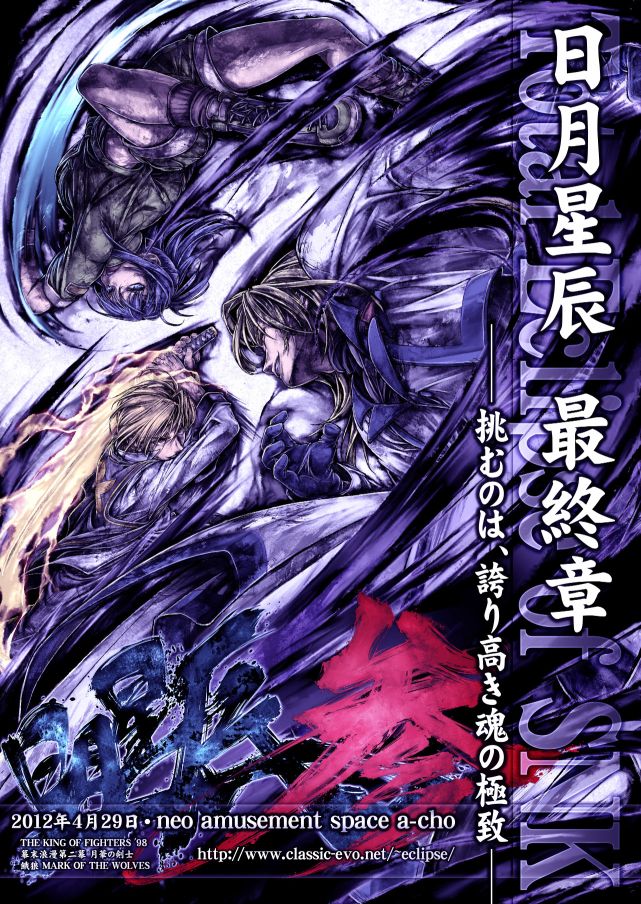 日程:2012年4月29日(日) 会場:neo amusement space a-cho 公式ホームページ: http://www.classic-evo.net/~eclipse/ 公式twitter: @eclipse_snk ---------------------------------------- いよいよ公式ホームページが公開されました! 絢爛で格調ある模様から最終章の壮大さが伝わってくるようです。 今後の情報は公式ホームページを主として発信されていきます。 よろしくお願いいたします。 お待たせいたしました!