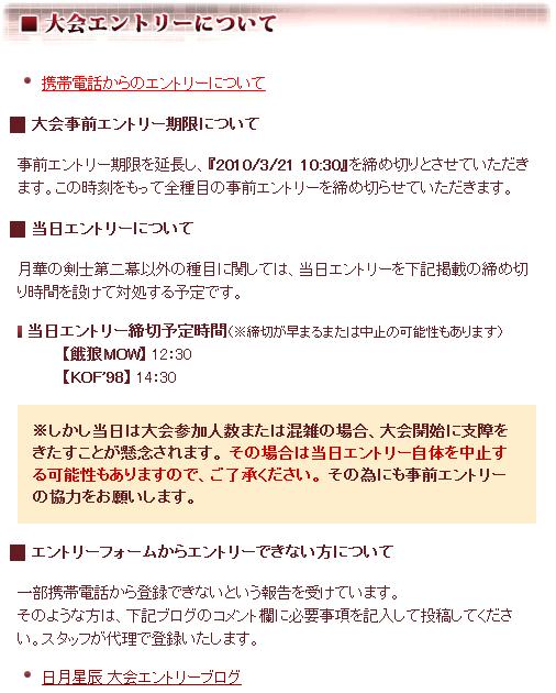 月華の剣士の試合中も餓狼、KOF98は当日エントリーを受け付けております。